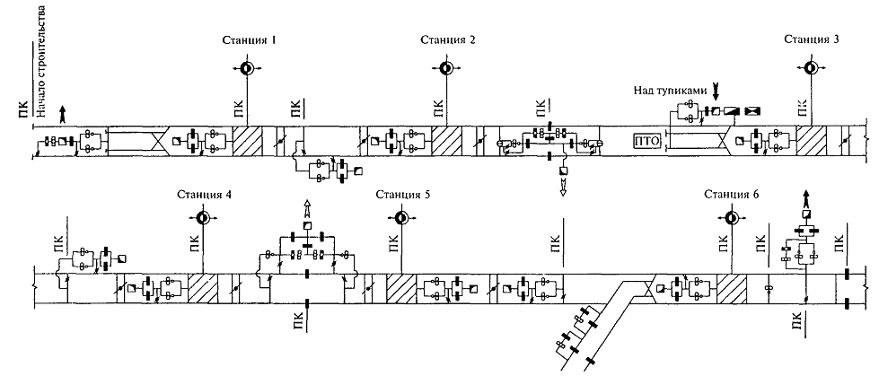 Освещение салонов вагонов поездов, размещаемых на станции, осуществлять переносными светильниками, для подключения которых предусматривать штепсельную группу осветительной сети под козырьком платформы. 12 СВЯЗЬ12.1 Для обеспечения работы метрополитена в режиме убежища использовать виды связи согласно СП 32-105, применять дополнительные виды оперативно-технологических связей по приложению В, а также следующие виды местных связей: а) прямую связь КПС - с КПС соседних станций; б) станционную связь КПС - с постами у затворов, с санпропускниками эвакуационных выходов, с КПОПБС и КПШ, входящими в его зону обслуживания; в) местную связь ДЭС - с внутренними рабочими местами; г) местную связь ФВУ - с внутренними рабочими местами; д) местную связь КПШ - с постами у шлюзовых затворов; е) переговорные устройства между внутренней и внешней зонами санпропускников. 12.2 В КПМ предусматривать устройство для оперативного переключения цепей линейных оперативно-технических связей (диспетчерских, тоннельной, поездной радио, АТС и электрочасов) с наземных диспетчерских пунктов линий на дублирующие диспетчерские пункты КПМ. Для обеспечения такого переключения прокладку магистральных кабелей связи предусматривать через КПМ. 12.3 Для информации укрываемых людей и персонала на станциях, в перегонных тоннелях, в других помещениях и сооружениях УАЖ использовать громкоговорящее оповещение: а) из КПМ - по всем станциям и перегонным тоннелям; б) из КПС - по всем зонам станции и прилегающим тоннелям; в) из КПОПБС (с разрешения КПС) - по всем зонам станции и прилегающим тоннелям; г) из КПШ - по шлюзовой камере; д) из КПД - по помещениям ДЭС; е) из КПФ - по помещениям ФВУ. Средства оповещения для приема сигнала воздушной тревоги и дистанционного управления включением сирен на станциях предусматривать в КПМ. Оборудование дистанционного включения сирен устанавливать в КПС. 12.4 В КПУ предусматривать эфирную радиосвязь с соседними КПУ линии, с КПМ, с ЗКПГОиЧС города и загородной зоны. 12.5 В КПМ предусматривать городской радиотрансляционный ввод, а также прямую факсимильную связь с ЗКПГОиЧС города и загородной зоны. 12.6 В командных пунктах обеспечивать средства связи со следующими абонентами: а) в КПД - с диспетчерами электроснабжения и электромеханических устройств; б) в КПФ - с диспетчером электромеханических устройств; в) в КПС - с диспетчерами аналогично ДПС по СП 32-105. 12.7 Для возможности организации радиосвязи с наземными службами города предусматривать линию станционной радиосвязи. 12.8 Каналы дополнительных видов связи учитывать в магистральных кабелях связи, проектируемых по СП 32-105. 13 УПРАВЛЕНИЕ, АВТОМАТИЗАЦИЯ13.1 Оперативное управление работой метрополитена в военное время предусматривать из КПМ. 13.2 Для организации оперативного управления работой УАЖ предусматривать командные пункты участков линий, станций, ДЭС и ФВУ, а также посты у межотсечных и шлюзовых затворов. На каждой линии метрополитена, при подтверждении в задании, организовывать командный пункт линии. В качестве КПЛ назначать один из КПУ линии с приданием ему дополнительных функций согласно заданию. В состав КПУ и КПС должны входить соответствующие командные пункты частей охраны порядка и безопасности, проектирование которых предусматривать на основании отдельного задания. 13.3 КПУ размещать в блоке