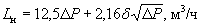 Пример оценки герметичности отсека Испытания проведены в двухпутном отсеке глубокого заложения протяженностью 2 км. Суммарный периметр защитных устройств в отсеке равен 200 м. Параметры воздуха в замерном сечении: - температура 10 °С; - относительная влажность 86 %; - барометрическое давление 735 мм рт.ст. Замеренный расход воздуха, подаваемого в отсек вентиляционной установкой, составил в первом испытании LФ1 = 4200 м3/ч при DРФ1 = 31 кгс/м2, во втором испытании LФ1 = 6250 м3/ч при DРФ1 = 62 кгс/м2. После устранения обнаруженных в ходе испытаний неплотностей при повторных испытаниях получены следующие данные: LФ2 = 3200 м3/ч при DРФ2 =40 кгс/м2 и LФ2 = 4800 м3/ч при DРФ2 = 70 кгс/м2. Согласно 1.3 нормируемая утечка воздуха для испытуемого отсека при d = 100 м/км определяется по формуле