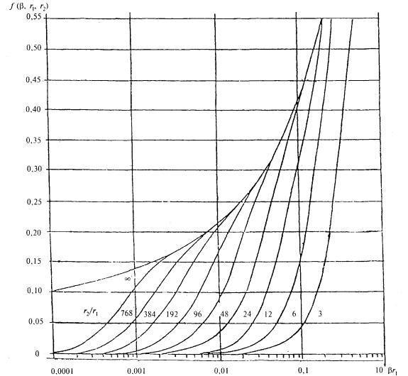 Нумерация слоев в формуле (55) принята в направлении от внутренней к наружной поверхности ограждения. При расчете Atdes по формуле (54) для окон и остекленных наружных дверей следует принимать величину Bi = 1/(1,08Ro), (56) где Ro - сопротивление теплопередаче окна или двери, м2×°С/Вт. 11.2.2.2 Для определения коэффициентов теплоусвоения поверхности отдельных слоев ограждающей конструкции следует предварительно вычислить тепловую инерцию D каждого слоя по формуле (53). 11.2.2.3 Коэффициент теплоусвоения внутренней поверхности ограждающей конструкции Yint, Вт/(м2×°С), определяется следующим образом: а) если первый (внутренний) слой ограждающей конструкции имеет тепловую инерцию D > 1, то Yint = s1; (57) б) если D1 + D2 + ... + Dn-1 < 1, но D1 + D2 + ... + Dn > 1, то коэффициент Yint следует определять последовательно расчетом коэффициентов теплоусвоения внутренней поверхности слоев конструкции, начиная с (п - 1) слоя до первого следующим образом: для (n - 1) слоя - по формуле Yn-1 = (Rn-1sn-12 + sn)/(1 + Rn-1sn); (58) для i-го слоя (i = n - 2, n - 3, ... , 1) - по формуле Yi = (Risi2 + Yi+1)/(1 + RnYi+1). (59) Коэффициент Yint принимается равным коэффициенту теплоусвоения поверхности i-го слоя Yi; в) если для ограждающей конструкции, состоящей из n слоев, D1 + D2 + ... + Dn < 1, то коэффициент Yint следует определять последовательно расчетом коэффициентов Yn, Yn-1, ... , Y1: для n-го слоя - по формуле Yn = (Rnsn2 + aext)/(1 + Rnaext); (60) для i-го слоя (i = n - 2, n - 3, ... , 1) - по формуле (59); г) для внутренних ограждающих конструкций величина Yint определяется как для наружных ограждений, но принимается, что в середине ограждений s = 0. Для несимметричных ограждений их середину следует назначать по половине величины SD всего ограждения; д) при наличии в ограждающей конструкции воздушной прослойки коэффициент теплоусвоения воздуха s в ней принимается равным нулю. В формулах (57) - (60) и неравенствах: D1, D2, ... , Dn - тепловая инерция соответственно 1-го, 2-го, ..., n-го слоев конструкции, определяемая по формуле (53); Ri, ... , Rn-1, Rn - термические сопротивления, м2×°С/Вт, соответственно i-го, ... , (n - 1)-го и n-го слоев конструкции, определяемые по формуле (8); s1, ... , si, ... , sn-1, sn - расчетные коэффициенты теплоусвоения материала 1-го, ... , i-го, ... , (n - 1)-го и n-го слоев конструкции, Вт/(м2×°С), принимаемые по приложению Д; Yi+1 - коэффициент теплоусвоения внутренней поверхности (i + 1)-го слоя конструкции Вт/(м2×°С); aext - то же, что и в формуле (8). 11.2.2.4 Полученная по формуле (54) расчетная амплитуда колебаний результирующей температуры помещения Atdes должна быть меньше или равна нормируемому значению Atdes £ Atreq. 11.2.2.5 Выбор типа теплоаккумулирующего прибора по показателю затухания тепловой волны в нем vc производится по графикам рисунков 2 - 4 для различных режимов его зарядки в зависимости от сочетания L/Yn и Qp.c/(LDtdes), обеспечивая в левом секторе от кривых условие Atdes £ Atreq. Рисунок 2 - График для подбора теплоаккумулирующих приборов (продолжительность зарядки 8 ч)