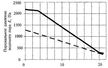 где tjav - средняя месячная температура воздуха j-го месяца, °С; п - число месяцев i-го периода; Rc - термическое сопротивление слоя ограждающей конструкции от внутренней поверхности до плоскости возможной конденсации, м2×°С/Вт; Ro - сопротивление теплопередаче ограждающей конструкции, м2×°С/Вт. Парциальное давление водяного пара Е, Е0, E1, Е2, Е3 в формулах (16) - (20) СНиП 23-02 в помещениях с агрессивной средой обозначают соответственно: Еp, Еp0, Ep1, Еp2, Еp3. 13.3 Значения парциального давления водяного пара Ер, Па, над насыщенными растворами солей для температур 10 - 30 °С принимают по таблице С.3 приложения С; для температур ниже 10 °С они могут быть определены по формуле Epi = 0,01Eijp, (76) где Ei - парциальное давление насыщенного водяного пара, Па, принимается по температуре в плоскости возможной конденсации по таблицам С.1 и C.2 приложения С; jр - относительная влажность воздуха на насыщенным водным растворен соли, %, при t = 20 °С, принимается по таблице С.3 приложения С. 13.4 Парциальное давление водяного пара Epi в плоскости возможной конденсации наружных стен из керамзитобетона на керамзитовом песке (rо = 1200 кг/м3), содержащем соли NaCl, КС1, MgCl2 или их смеси, а также расстояние до плоскости конденсации от внутренней поверхности стены dw в указанных стенах следует определять соответственно по формулам: Epi = 0,01Eijp при i = 1, 2, 3, 0; (77) dw = 0,07dinsjр, (78) где jp - относительная влажность воздуха в порах материала ограждающей конструкции, %, определяемая в соответствии с 13.3; dins - толщина утеплителя, м. Индексы i = 1, 2, 3, 0 относятся соответственно к холодному, переходному, теплом периодам и периоду месяцев с отрицательными средними месячными температурами. 13.5 Сопротивление паропроницанию Rvp, м2×ч×Па/мг, однослойной или отдельного слоя многослойной ограждающей конструкции следует определять по формуле Rvp = d/m, (79) где d - толщина слоя ограждающей конструкции, м; m - расчетный коэффициент паропроницаемости материала слоя ограждающей конструкции, мг/(м×ч×Па), принимаемый по приложению Д. Сопротивление паропроницанию многослойной ограждающей конструкции (или ее части) равно сумме сопротивлений паропроницанию составляющих ее слоев. Сопротивление паропроницанию Rvp листовых материалов и тонких слоев пароизоляции следует принимать по приложению Ш. Примечания 1 Сопротивление паропроницанию воздушных прослоек в ограждающих конструкциях следует принимать равным нулю независимо от расположения и толщины этих прослоек. 2 Для обеспечения нормируемого сопротивления паропроницанию RvpIreq ограждающей конструкции следует определять сопротивление паропроницанию Rvp конструкции в пределах от внутренней поверхности до плоскости возможной конденсации. 3 В помещениях с влажным или мокрым режимом следует предусматривать пароизоляцию теплоизолирующих уплотнителей сопряжений элементов ограждающих конструкций (мест примыкания заполнений проемов к стенам и т.п.) со стороны помещений; сопротивление паропроницанию в местах таких сопряжений проверяется из условия ограничения накопления влаги в сопряжениях за период с отрицательными средними месячными температурами наружного воздуха на основании расчета температурного и влажностного полей. 13.6 Значения температуры в плоскости возможной конденсации следует определять по формуле t = tint - [(tint - text)/Ro](Rint + SR), (80) где tint, text - расчетные температуры соответственно вну