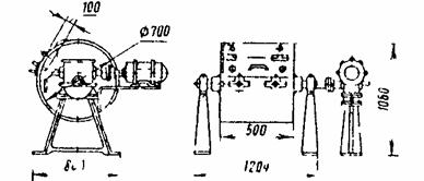 где m - испытываемая навеска щебня (гравия), г; m1 - остаток на сите после просеивания раздробленной, в цилиндре навески щебня, г. При испытании щебня (гравия), состоящего из смеси двух или более фракций, показатель дробимости вычисляют как средневзвешенное результатов испытания таких фракций. Определение истираемости щебня (гравия) в полочном барабане Для испытания каменного материала необходим полочный барабан, весы, сушильный шкаф, стандартный набор сит. Фракции щебня (гравия) загружают в полочный барабан (рис. 1) вместе с чугунными или стальными шарами диаметрам около 48 мм и массой 405 г каждый. Крышку барабана закрепляют и приводят барабан во вращение. Скорость вращения составляет 30 - 33 об/мин. Массу фракций щебня, количество шаров и оборотов барабана принимают в соответствии с табл. 4. Таблица 4