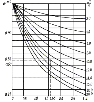 где Tо - начальная температура смеси в момент укладки, °С; m - темп остывания, рассчитываемый по эмпирической зависимости, 1/ч; t - время остывания, ч. Температура смеси при скорости ветра 5 м/с может быть определена по расчетному графику, представленному на рис. 3.2. На оси ординат этого графика отложены значения е-mt на оси абсцисс - время остывания в ч. Рис. 3.2. Расчетная номограмма для определения температуры слоя при остывании при скорости ветра 5 м/с Цифры на кривых обозначают отношение D Т:Н, где DТ - разность между начальной температурой смеси То и температурой воздуха ТВ; Н - толщина слоя в плотном теле, см. При определении температуры остывания асфальтобетонного слоя через некоторое время с момента начала укладки по горизонтальной оси против заданного значения времени восстанавливается перпендикуляр до пересечения с кривой, соответствующей значению DТ:Н, от точки пересечения с этой кривой проводим горизонтальную прямую до оси ординат, на которой указано значение е-mt. Температуру в данный момент находят, умножая это значение на начальную температуру То. При определении времени, в течение которого смесь остывает до температуры Т, рассчитывают величину е-mt = Т:ТТ. Затем находят на вертикальной оси графика точку, соответствующую значению е-mt, и проводят через нее горизонтальную линию до пересечения с кривой, которая соответствует значению DТ:Н. От точки пересечения с этой кривой опускают перпендикуляр на ось абсцисс, где находят значение времени. Оба построения показаны на графике пунктиром со стрелками. 3.2.5. Основным технологическим параметром, который характеризует уплотняемость асфальтобетонных смесей, является удельная работа уплотнения. При уплотнении катками различных типов суммарная работа их ориентировочно должна равняться удельной потребной работе, приведенной в табл. 3.1. Таблица 3.1 Требуемая удельная работа уплотнений смесей