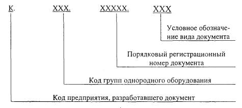 Г.2 Условное обозначение вида документа следующее: - для проекта производства работ - ППР; - для ведомости документов ППР - ВДП. Г.3 Порядковые регистрационные номера состоят из пяти цифр от 00001 до 99999 и присваиваются предприятием-разработчиком. Г.4 Код групп однородного оборудования принимается в соответствии с таблицей Г.1. Г.5 Код предприятия разработавшего документ принимается согласно Общероссийскому классификатору предприятий и организаций (ОКПО). Таблица Г.1 - Код групп однородного оборудования