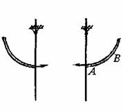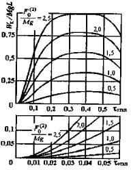 б) а - траектории движения проводников (их центров масс) при большом кратковременном токе КЗ: АВ - участок траектории, который проходит проводник во время КЗ; ВС - участок траектории, который проходит проводник, натянутый действующими на него силами, после отключения тока КЗ; CD - участок траектории, где ненатянутый провод "падает" под действием силы тяжести и инерционных сил; б - траектории движения проводников при малом токе КЗ; Fцб - центробежная сила Рисунок 2 - Траектории движения проводников при КЗ и после него - сила тяжести Mg, направленная вертикально вниз и действующая постоянно на всех этапах движения проводников; - электродинамическая сила Fэ, которая при двухфазном КЗ на линиях с проводниками, закрепленными в одной горизонтальной плоскости, направлена горизонтально и действует до момента отключения тока КЗ; - инерционная сила Fин, направленная противоположно вектору окружного ускорения центра массы проводника в пролете и действующая в периоды, когда проводник натянут и его можно рассматривать как маятник; - инерционные силы, свойственные телам, которые после воздействия нескольких сил двигаются в пространстве в поле силы тяжести: это имеет место на этапе движения гибких проводников, когда они не натянуты. 3.1.4 Принятые допущения Принятие расчетной модели гибкого проводника в виде маятника, определение электродинамических сил по формулам, справедливым для параллельных бесконечно тонких и длинных проводников, оправданы многолетним опытом их использования. Эти гипотезы положены в основу рекомендаций МЭК по расчетам электродинамической стойкости электроустановок с гибкими проводниками. Целесообразность принятия этих гипотез подтверждена проведенными за рубежом достаточно обстоятельными экспериментами. Упрощенный учет влияния отводов и гирлянд изоляторов, влияния нагрева проводников, отказ от учета деформаций растяжения проводников оправдываются сравнительными оценками, сделанными на базе многочисленных расчетов. 4 МЕТОДИКА РАСЧЕТАПрежде чем приступать к расчету смещений гибких проводников при КЗ, вычисляется значение критерия, характеризующего степень опасности сближения проводников при КЗ. При значении этого критерия больше предельного, необходимо проводить расчет, в противном случае расчет не нужен. Расчет выполняется в два этапа. На первом этапе вычисляется энергия, которую накапливают проводники пролета за время КЗ. Эта энергия равна работе электродинамических сил. На втором этапе по найденной энергии вычисляются горизонтальные смещения проводников в середине пролета. Если продолжительность КЗ меньше 0,6 периода малых собственных колебаний расчетного маятника, то работа электродинамических сил за время КЗ вычисляется с помощью кривых, полученных путем решения уравнения вынужденных нелинейных колебаний расчетного маятника. Если же продолжительность КЗ больше 0,6 периода малых собственных колебаний расчетного маятника, то работа электродинамических сил за время КЗ вычисляется с помощью других кривых, построенных путем использования закона постоянства полной энергии потенциальной системы. При кратковременных КЗ, когда их расчетная продолжительность не превышает так называемую предельную (см. ниже), смещение проводников оказывается возможным вычислять, не определяя работу электродинам