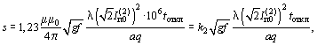 m - относительная магнитная проницаемость воздушной среды (для воздуха m = 1); m0 - магнитная проницаемость вакуума, Гн/м. При tоткл £ tпред горизонтальное смещение проводника при КЗ, м, вычисляется по формуле