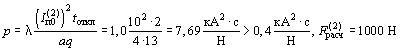 сначала следует по формуле (1) вычислить значение критерия р. Если р £ 0,4 кА2 × с/Н, то проводники находятся в неопасной зоне и могут нормально