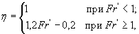 где т = ωотв/ωобщ - коэффициент сквозности стенки, который принимается из условий обеспечения прочности конструкции и равномерности распределения скоростей течения по водовыпускному фронту (ωотв - площадь отверстий, ωобщ - общая площадь стенки или завесы). Длина переливной дамбы Lп.д определяется исходя из условия установления на ее гребне критического режима (Fr' = 0,8)