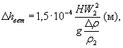 Так как Р < 0,3, то в водоеме-охладителе формируется двухслойная температурная стратификация с толщиной верхнего слоя при штиле h1 = 0,12 · 6,0 = 0,72 м. Дополнительное заглубление температурного скачка вследствие ветрового перемешивания определяется по формуле (2.4)