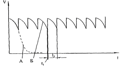 А - в статических условиях; Б - при циркуляции взвеси частиц в растворителе через насос-смеситель; t1 - время пребывания взвеси в рабочем участке; t2 - время движения взвеси в пространстве емкости до момента ее всасывания