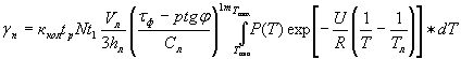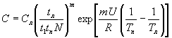 Энергия активации вязкопластичного разрушения U в кДж/моль вычисляется на основании значений прочности при сжатии для двух температур.