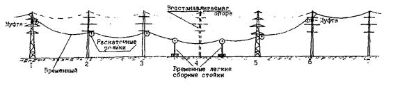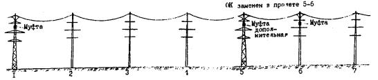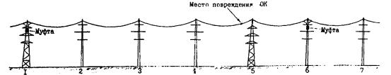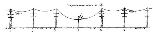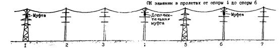 После восстановления опоры ВЛ ОК монтируется от опоры 1 до опоры 6, либо от опоры 3 до опоры 5 или 6 с установкой дополнительной муфты