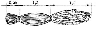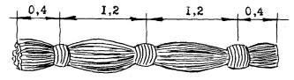 Рис. 15. Двухкомельная фашина Состав работы 1. Подноска хвороста и перевязок. 2. Укладка хвороста в готовые козлы или станок. 3. Стягивание сжимом уложенного на козлы хвороста. 4. Связывание уложенного и сжатого хвороста перевязками через 1,2 м. 5. Передвижка станка вдоль штабеля (при вязке на станке). 6. Опиливание комлей фашин. 7. Относка фашин с укладкой их в штабель. Речной рабочий 2 разр. Нормы времени на 100 фашин