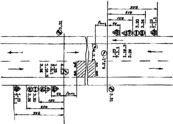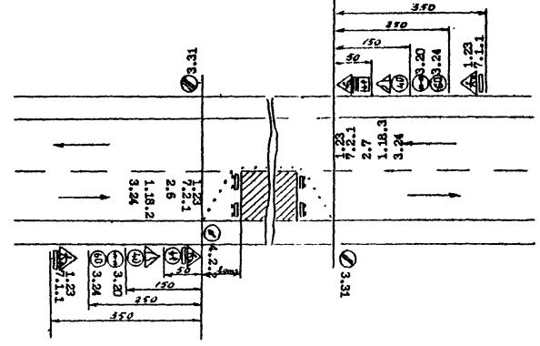 Схема расстановки дорожных знаков при ремонтных работах (объезд по обочине).