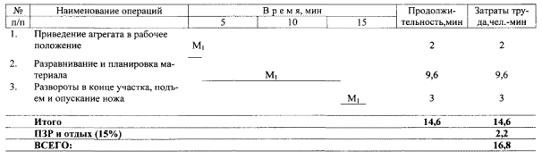 3.3. Спецодежда и спецобувь. 1. Комбинезон хлопчатобумажный 1 2. Рукавицы комбинированные двупалые 1 пара 4. Технология и организация процесса4.1. При разравнивании материалов основания автогрейдером при уширении проезжей части дорог и укреплении обочин работы выполняются в следующей технологической последовательности: - приведение агрегата в рабочее положение; - разравнивание и планировка материала; - подъем и опускание ножа; - развороты в конце участка. Длина участка разравнивания принята свыше 400 м. Ширина разравнивания проезжей части и обочин - 2 м. 4.2. График трудового процесса