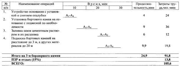 Примечание: график трудового процесса составлен на установку 3 м бордюрного камня. 5. Приемы труда