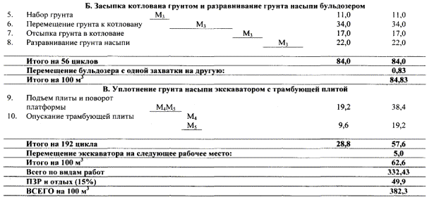 Примечание. Работы по перемещению экскаваторов на следующие рабочие места бульдозера с одной захватки на другую выполняются в технологические перерывы. Трудозатраты приведены в графике трудового процесса. |