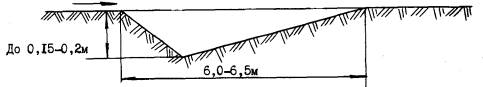 Примечание: В затраты труда по карте включено время на подготовительно-заключительные работы - 5 % и отдых - 10 %. Снижение затрат труда и повышение выработки достигается в результате применения траншейно-полосного способа возведения земляного полотна с клиновой схемой зарезания. Использование методов и приемов труда, рекомендуемых картой, позволит снизить затраты труда и повысить выработку до 9 %. 2. Подготовка и условия выполнения процесса2.1. До начала работ по возведению земляного полотна должны быть выполнены подготовительные работы: - восстановление и закрепление на местности разбивочных знаков; - контрольные промеры продольной линии с установкой дополнительных плюсовых точек и разбивкой поперечников; - осмотр участка работ машинистом бульдозера и подготовка машины к работе. 2.2. Работа бульдозера по отсыпке насыпи из одностороннего бокового резерва начинается на расстоянии 6 - 6,5 м от внутренней бровки резерва. 2.3. При возведении земляного полотна из грунта 2 группы нормальной влажности и в районах с равнинным характером местности - рациональнее применять клиновую схему зарезания грунта.