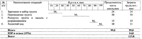 3.2. Спецодежда и спецобувь. 1. Комбинезон хлопчатобумажный 1 2. Рукавицы комбинированные двупалые 1 пара 4. Технологический процесс и организация труда4.1. Работы по возведению насыпи земляного полотна автомобильной дороги бульдозером выполняются в технологической последовательности: - зарезание и набор грунта; - перемещение грунта; - разгрузка грунта в насыпь с разравниванием; - холостой ход. 4.2. График трудового процесса