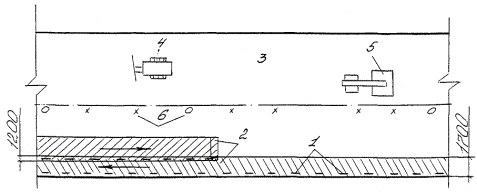 1 - скобы; 2 - дорнит; 3 - земляное полотно; 4 - бульдозер; 5 - каток; 6 - знаки безопасности и ограждения 5. Приемы труда