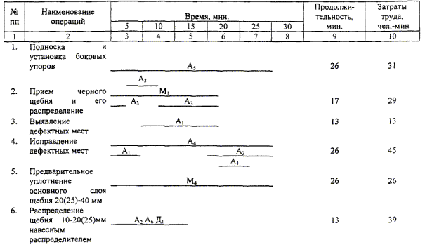1 - автосамосвал; 2 - асфальтоукладчик; 3 - легкий каток; 4 - автосамосвал с навесным распределителем щебня; 5 - тяжелый каток. 5. Приемы труда