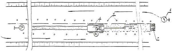 М1М2 - места нахождения рабочих 1 - фреза «Виртген 2200/4200»; 2 - рассыпанный щебень; 3 - валик отфрезерованного материала; 4 - направляющие конусы; 5 - дорожный знак 1.18.3; 6 - дорожный знак 4.2.1 (4.2.2); 7 - навесной щебнераспределитель. Стрелками указано направление движения автотранспорта. 5. Приемы труда