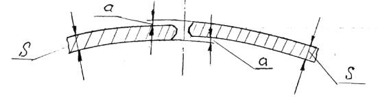 Кольцевые швы 7) Отклонение от перпендикулярности торца обечайки относительно её оси должно обеспечивать при сборке под сварку требуемый зазор по кольцевому стыку и прямолинейность образующей корпуса по п. 5.4.2. 5.2.2.3. Для обечаек, подвергаемых механической обработке, отклонения от номинального диаметра и круглости (овальность) должны соответствовать требованиям п.п. 5.2.1.3 и 5.2.1.4. 5.2.2.4. Коррозионностойкая поверхность обечаек двухслойной стали, а также внутренняя поверхность обечаек на коррозионностойкой стали, изготовленных методом горячей штамповки или вальцовки и прошедшие термообработку, должны быть полностью очищены от окалины. 5.2.3. Центральные обечайки (для рулонированных сосудов)5.2.3.1. Толщина центральной обечайки должна быть не менее суммарной толщины трех слоев спиральной навивки рулонированной обечайки. 5.2.3.2. Центральные обечайки допускается изготавливать из нескольких листов, но не более чем из трех с продольными стыковыми сварными швами. Ширина замыкающего листа должна быть не менее 400мм. 5.2.3.3. Разделку кромок под сварку продольных швов центральных обечаек следует выполнять по ГОСТ 5264, ГОСТ 8713, ГОСТ 16098. 5.2.3.4. Размеры противоположных сторон и диагоналей развертки центральной обечайки не должны отличаться более чем на 3мм. Отклонение длины развертки не должно превышать ± 3мм. 5.2.3.5. Смещение кромок по высоте «а» при сборке продольных швов центральной обечайки не должно быть более 10% толщины листа, но не более 2,5мм (Черт. 2). При этом смещение кромок по внутренней поверхности обечайки из двухслойной стали не.. должно быть более 1мм. Смещение кромок по наружной поверхности должно быть плавно зачищено на ширине не менее 30мм.