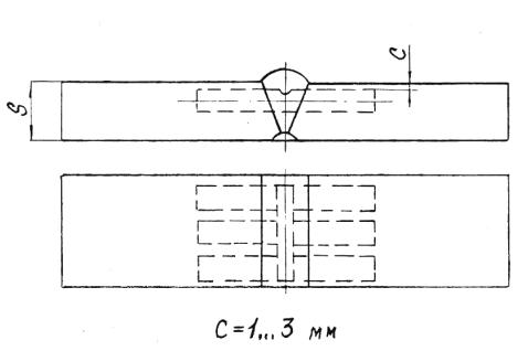 Расположение образцов для испытания металла шва на ударный изгиб