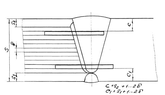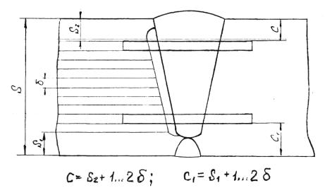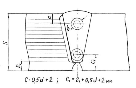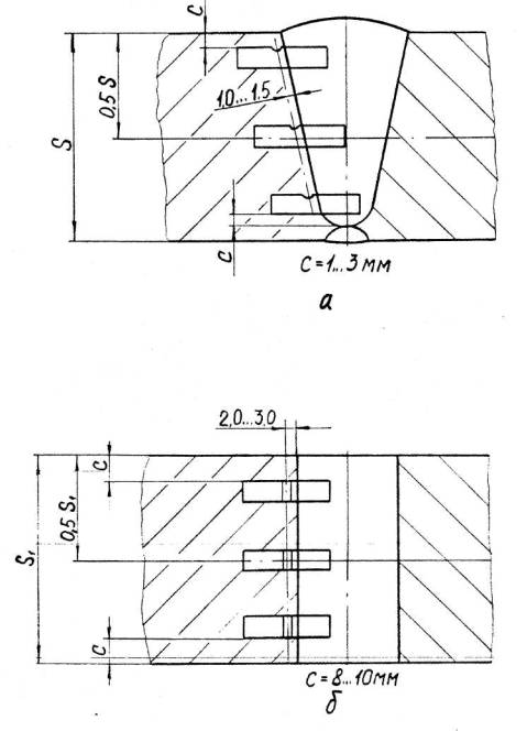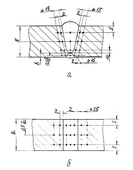 а – для автоматической и ручной сварки б – для электрошлаковой сварки S1 – исполнительная толщина заготовки под штамповку Схема измерения твердости сварных соединений с наружной поверхности корпуса сосуда, аппарата