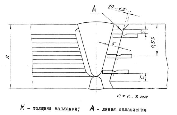 Расположение образцов для испытания металла наплавки на ударный изгиб