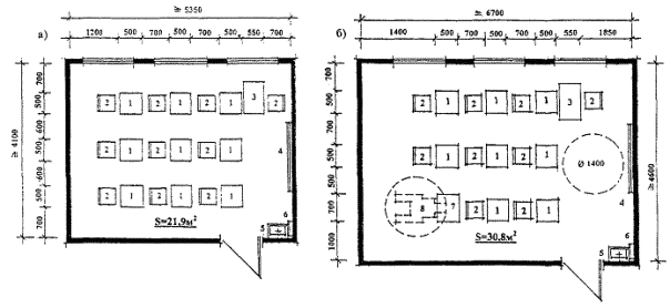 ПРИЛОЖЕНИЯЭКСПЛИКАЦИЯ ОБОРУДОВАНИЯ 1. Кровать 2. Стул 3. Место для инвалидной коляски Рис. П.1. Спальная на 5 (а) и 1 (б) место. ЭКСПЛИКАЦИЯ ОБОРУДОВАНИЯ 1. Ученический стол 4. Кресло 7. Классная доска 2. Стул 5. Журнальный стол 8. Умывальник с вешалкой для полотенца 3. Стол воспитателя 6. Телевизор с видеомагнитофоном 9. Место для инвалидной коляски Рис. П.2. Комната приготовления уроков - игровая (тихого отдыха). Расстановка оборудования: а) - для приготовления уроков; б) - для игр или отдыха. ЭКСПЛИКАЦИЯ ОБОРУДОВАНИЯ а)- кабинет компьютерной диагностики б) - кабинет системной диагностики 1. Рабочий стол специалиста с компьютером 1. Рабочий стол 2. Рабочий стул 2. Стул для специалиста 3. Стул для пациента 3. Стул для пациента 4. Стеллаж 4. Стеллаж 5. Раковина с вешалкой для полотенца 5. Раковина с вешалкой для полотенца 6. Место для инвалидной коляски 6. Место для инвалидной коляски Рис. П.3. Кабинеты специалистов. Расстановка оборудования: а) - компьютерной диагностики, б) - системной диагностики. ЭКСПЛИКАЦИЯ ОБОРУДОВАНИЯ 1. Стол специалиста 2. Стул 3. Компьютерный стол специалиста с компьютером 4. Шкаф - стеллаж 5. Журнальный стол 6. Мягкая мебель 7. Умывальник 8. Вешалка для полотенца 9. Место для инвалидной коляски Рис. П.4. Кабинет специалиста психолога, юриста по восстановительному правосудию. ЭКСПЛИКАЦИЯ ОБОРУДОВАНИЯ 1. Обеденный стол 2. Стул 3. Шкаф для посуды 4. Холодильник 5. Рабочий стол с микроволновой печью и электрочайником 6. Раковина 7. Журнальный столик 8. Мягкая мебель 9. Телевизор 10. Место для инвалидной коляски Рис. П.5. Помещение родительского клуба. ЭКСПЛИКАЦИЯ ОБОРУДОВАНИЯ 1. Кровать 2. Детский стул 3. Стул воспитателя Рис. П.6. Спальная для дошкольников на 8 мест. ЭКСПЛИКАЦИЯ ОБОРУДОВАНИЯ 1. Кровать 2. Детский стул 3. Стул воспитателя 4. Место для инвалидной коляски Рис. П.7. Спальная для дошкольников с ограниченными возможностями на 8 мест. ЭКСПЛИКАЦИЯ ОБОРУДОВАНИЯ 1. Кровать 2. Детский стул 3. Стул воспитателя Рис. П.8. Спальная для дошкольников на 4 места. ЭКСПЛИКАЦИЯ ОБОРУДОВАНИЯ 1. Кровать 2. Детский стул 3. Стул воспитателя 4. Место для инвалидной коляски Рис. П.9. Спальная для дошкольников с ограниченными возможностями на 4 места. ЭКСПЛИКАЦИЯ ОБОРУДОВАНИЯ 1. Детский стол 4. Стол воспитателя 8. Стеллаж 2. Детский стол для 5. Стул воспитателя 9. Ученическая доска Инвалида - колясочника 6. Тумба - стеллаж 10. Место для инвалидной коляски 3. Детский стул 7. Телевизор с видеомагнитофоном 11. Раковина с вешалкой для полотенца Рис. П.10. Групповая на 8 человек для дошкольников. Варианты расстановки оборудования: а) - для игр; б) - для проведения учебных занятий.