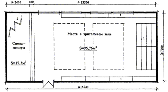 Досуговые и физкультурно-оздоровительные помещения. 6.111. Рекомендуемый состав и площади досуговых и физкультурно-оздоровительных помещений приведены в таблице 6.12. 6.112. Основная задача службы данной группы помещений - первичная профилактика асоциального поведения воспитанников на основе отвлечения от привычного агрессивно настроенного окружения и вовлечения в мероприятия, направленные на: - физическое развитие, предоставление позитивной возможности выхода своей энергии; - формирование у детей и подростков потребности в групповом и межличностном общении. 6.113. В составе досуговых помещений предусматривается зрительный зал на 80 % от единовременной вместимости СРЦ (за вычетом воспитанников, проживающих в социальной гостинице) из расчета 1,2 м2 на 1 место в связи с многофункциональным использованием площади зала (Приложение, Рис. П.35). Места в зале рекомендуется предусматривать съемными, секционными со складированием по периметру зала. Освобождаемая в этом случае площадь зала может быть использована для проведения танцев, массовых игр. 6.114. В состав досуговых помещений рекомендуется включать кружки эстетического воспитания: театральный, циркового искусства, хорового искусства, танцевальный. Эти кружки, как правило, организуются на базе актового зала. 6.115. В состав досуговых помещений рекомендуется включать библиотеку площадью 90 м2 с книгохранилищем и читальным залом. 6.116. В составе физкультурно-оздоровительных помещений предусматривается спортивный зал. Связь спортивного зала с раздевальными предусматривается непосредственно или через коридор. При спортивном зале предусматривается кладовая спортинвентаря, смежная с ним. (Приложение, Рис. П.36). 6.117. В составе помещений данной группы рекомендуется дополнительно предусматривать помещения для хранения спортивного инвентаря (лыж, роликовых коньков, велосипедов и т.п.), площади которых определяются заданием на проектирование. Таблица 6.12. Рекомендуемые состав и площади досуговых и физкультурно-оздоровительных помещений