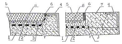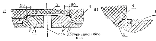 ГОСУДАРСТВЕННЫЙ ДОРОЖНЫЙ НАУЧНО-ИССЛЕДОВАТЕЛЬСКИЙ РЕКОМЕНДАЦИИ 1999 1. ОБЩИЕ ПОЛОЖЕНИЯ1.1. Настоящее Руководство разработано в развитие требований в части гидроизоляции следующих нормативных документов: СНиП 2.05.03-84* «Мосты и трубы», СНиП 3.06.04-91 «Мосты и трубы», СНиП 2.03.11-85, СНиП 3.04.03-85 «Защита строительных конструкций от коррозии», ВСП 32-81 «Инструкция по устройству гидроизоляции конструкций мостов и труб на железных, автомобильных и городских дорогах». 1.3. Упомянутые в п. 1.2 гидроизоляционные материалы применяют в зависимости от климатического района строительства, определяемого минимальной температурой наиболее холодных суток с обеспеченностью 0,92 по СНиП 2.01.01-82. Материал Изопласт применяют в районах строительства с температурой наиболее холодных суток до минус 40 ºС. Материалы Мостопласт и Изоэласт - в районах с температурой наиболее холодных суток ниже минус 40 ºС. Материалы Мостопласт и Изопласт могут быть также применены для устройства защитно-сцепляющего слоя на стальных мостах. В этом случае их применение осуществляют по специальным Рекомендациям и Технологическим регламентам, разработанным применительно к каждому конкретному мосту. 1.4. Настоящее Руководство содержит обязательные требования, которые необходимо соблюдать при проектировании и устройстве гидроизоляции в процессе строительства и ремонта сооружений, осуществлении контроля при производстве работ и приёмке сооружений в эксплуатацию. 1.5. В проекте сооружения должны быть предусмотрены мероприятия по отводу воды с поверхностей элементов мостового полотна, плиты проезжей части, из пониженных мест, углов в пересечениях элементов конструкций, замкнутых полостей. Поверхностям, по которым стекает вода, должны придаваться уклоны в соответствии с Нормами проектирования. Должен быть предусмотрен отвод воды, попавшей на гидроизоляцию. Следует предусмотреть предотвращение затекания воды под гидроизоляцию, для чего необходимо в проекте предусматривать конструктивные решения её сопряжения с элементами мостового полотна. 2. КОНСТРУКЦИЯ ДОРОЖНОЙ ОДЕЖДЫ И ТРЕБОВАНИЯ К ЕЁ ЭЛЕМЕНТАМ2.1. Конструкцию дорожной одежды на железобетонной плите проезжей части выполняют в соответствии с п. 1.61* СНиП 2.05.03-84* состоящей из выравнивающего слоя с минимальной толщиной 30 мм, гидроизоляции, защитного слоя с минимальной толщиной 40 мм, двухслойного асфальтобетонного покрытия с минимальной толщиной 70 мм (рис. 2.1а). Выравнивающий слой может быть выполнен переменной толщины для придания поверхности под гидроизоляцию необходимого уклона, либо может отсутствовать при монолитной плите проезжей части, поверхность которой удовлетворяет требованиям выполнения гидроизоляции. На сборных пролётных строениях с бетонируемыми стыками устройство выравнивающего слоя обязательно. При применении материалов Изопласт и Мостопласт по согласованию с Заказчиком защитный слой может быть выполнен из асфальтобетона. В этом случае его толщину включают в состав асфальтобетонного покрытия, принимая его толщину равной 110 мм (рис. 2.1б). Рис. 2.1. Конструкция дорожной одежды. 1 - асфальтобетон 2 слоя ≥ 70 мм; 2 - защитный слой ≥ 10 мм; 3 - арматурная сетка; 4 - гидроизоляция; 5 - выравнивающий слой ≥ 30 мм; 6 - изолируемая поверхность. 2.2. Выравнивающий слой выполняют из мелкозернистого (песчаного) бетона, имеющего клас