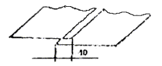 Рис. 5.1. Конструкция гидроизоляции. 1 - рулонный гидроизоляционный материал; 2 - изолируемая поверхность 5.2. Укладку гидроизоляционного материала производят, раскатывая рулоны в продольном направлении, начиная с пониженных мест (рис. 5.2). Рис. 5.2. Порядок укладки гидроизоляционного материала. Допускается поперечная раскатка рулонов с расположением нахлёстки материалов в поперечном направлении с учётом продольного уклона так, чтобы верхний рулон был наклеен на нижний с верховой по уклону стороны. 5.3. Перед укладкой гидроизоляции рекомендуется развернуть на подготовленное основание 5 - 6 рулонов, примерить каждый рулон по отношению к другому, обеспечив нахлёст по продольным кромкам. Затем приклеить концы всех рулонов с одной стороны и скатать материал снова в рулоны. Рулон материала для удобства работы с ним и обеспечения необходимого качества гидроизоляции должен быть круглым. Плоский рулон материала следует перемотать. 5.4. Полотна рулонных материалов наклеивают внахлёстку на 6 - 10 см по продольным сторонам и не менее 15 см в поперечных стыках (рис. 5.3). При наличии на полотнище материала крупнозернистой насыпки ее счищают с зоны стыка. Рис. 5.3. Соединение полотен гидроизоляционного материала 5.5. Устройство гидроизоляции из рулонных гидроизоляционных материалов производят путем его наклейки на бетонную поверхность, оплавляя нижнюю поверхность рулона пламенем воздушно-газовой горелки и одновременно подогревая поверхность основания, медленно разворачивая рулон и прижимая его к основанию (рис. 5.4). Капли покровной массы или небольшой валик мастики в месте соприкосновения рулона с основанием свидетельствуют о правильном температурном режиме укладки. Наличие большого количества вытекающей массы, а также появление дыма указывают на перегрев материала. Имеющаяся на нижней поверхности материала полиэтиленовая пленка должна быть полностью расплавлена вместе с битумной массой. Рис. 5.4. Наклейка рулонной гидроизоляции 5.6. Наклеиваемые полотнища не должны иметь складок, морщин, волнистости. Но если это случится, допускаемая высота складки, расположенной вдоль уклона, не должна превышать 10 мм. 5.7. В зимний период при раскатке рулонов их необходимо подогревать пламенем горелки с наружной стороны. 5.8. Для наклейки рулонных материалов применяют газ пропан с расходом 0,3 - 0,6 л/м2 в зависимости от температуры воздуха. Наклейку производят однофакельными или многофакельными горелками. 5.9. Наклейка может быть проведена также с использованием кровельной машины «Луч-4У-1» способом направления инфракрасным нагревом. 5.10. При выполнении гидроизоляционных работ следует принять меры предосторожности против попадания на гидроизоляцию масла, бензина, дизельного топлива и других растворителей. В случае пролива указанных материалов поврежденный участок вырезают и ставят заплату. 6. УСЛОВИЯ ПРОИЗВОДСТВА ГИДРОИЗОЛЯЦИОННЫХ РАБОТ6.1. В соответствии с требованиями СНиП 3.06.03-85 п. 10.16 устройство асфальтобетонных покрытий можно выполнять осенью при температуре не ниже плюс 10 ºС, поэтому организация работ на объекте должна предусматривать завершение гидроизоляционных работ до наступления низких температур воздуха. 6.2. В случае необходимости производства работ по устройству гидроизоляции при низких температурах воздуха предпочтительно производить ра