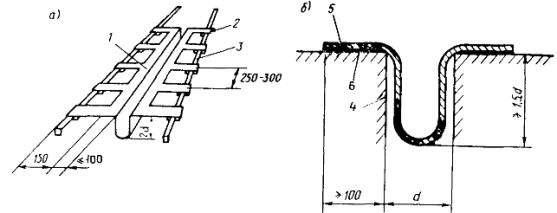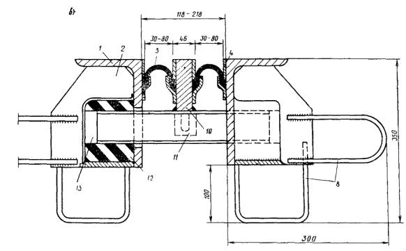 2.7. Деформационные швы с резиновыми компенсаторами К-8 применяют при перемещениях до 50 мм в мостах и путепроводах на дорогах I-V категорий и в городах (рис. 3,а,б). На дорогах I категории и в городах допускается устройство модульных швов с двумя рядами компенсаторов, обеспечивающих перемещения до 100 мм (рис. 3,в)