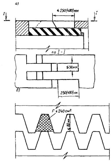 с гребенчатыми консольными плитами (тип ПГ-К), толщина которых составляет 40-80 мм (рис. 5,б).
