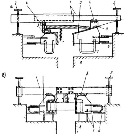 Рис. 5. Примеры конструкций деформационных швов с гребенчатыми плитами скользящего (а) и консольного (б) типов: