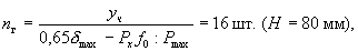 80 и f0 = 7 (обозначения по ГОСТ 3057-54) δmax = 3,7 мм. Усилие Рmin вызывает деформацию одного