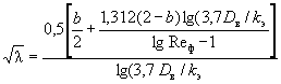 (при b > 1 следует принимать b = 2), Rеф - число Рейнольдса фактическое.