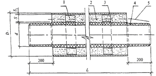 4.9 Теплоизолированные асбестоцементные трубы и стальные фасонные изделия при условиях хранения более двух недель должны быть защищены от воздействия прямых солнечных лучей (в тени, под навесом или прикрыты рулонным материалом). 4.10 Не допускается складирование и хранение продукции в местах, подверженных затоплению водой. 5 МОНТАЖ ТЕПЛОВЫХ СЕТЕЙ5.1 Организационно-техническая подготовка к строительству тепловых сетей из асбестоцементных труб должна осуществляться в соответствии со СНиП 3.01.01, СНиП 3.05.03 и общими требованиями СП 41-105. 5.2 К сооружению тепловых сетей следует приступать только после согласования и утверждения в установленном порядке всей технической документации. 5.3 Строительно-монтажная организация в соответствии с действующим законодательством должна гарантировать соответствие качества выполненных ею тепловых сетей бесканальной прокладки из изолированных асбестоцементных труб, включая работы по изоляции стыков и установке системы ОДК требованиям проектной и нормативной документации в течение 5 лет с момента сдачи указанных сетей в эксплуатацию. Договором строительного подряда гарантийный срок может быть увеличен. 5.4 Трубы, муфты, арматура и готовые узлы перед монтажом должны быть осмотрены и очищены изнутри и снаружи от грязи, снега, льда, масел и посторонних предметов. 5.5 Концы труб и муфт, а также отверстия во фланцах запорной и другой арматуры при перерывах в укладке следует закрывать заглушками или деревянными пробками. 5.6 Резиновые уплотнительные кольца для монтажа трубопроводов в условиях низких температур наружного воздуха не допускается применять в промороженном состоянии. При отрицательных температурах воздуха кольца следует прогревать в горячей воде (50 - 60 °С). 5.7 На углах поворотов и в местах ответвлений, выполненных при помощи стальных отводов, необходимо предусматривать упоры (приложение Г). При сооружении упора опорная стенка котлована должна быть с ненарушенной структурой грунта. Зазор между трубопроводом и сборной частью бетонных или кирпичных упоров должен быть плотно заполнен бетонной смесью или цементным раствором. 5.8 При разбивке трассы тепловых сетей следует руководствоваться законодательством Российской Федерации об охране окружающей среды. 5.9 Строительство тепловых сетей включает следующие основные процессы: - разбивку трассы; - транспортировку теплоизолированных труб и фасонных изделий заводского изготовления, хранение; - земляные работы; - раскладку труб; - проверку целостности проводников-индикаторов системы ОДК; - соединения труб; - устройство неподвижных опор и упоров; - монтаж теплоизолированных труб и их элементов; - теплоизоляцию и гидроизоляцию стыков; - монтаж сигнальной системы ОДК; - проверку системы ОДК. 5.10 Разбивку трассы тепловых сетей следует производить в соответствии с проектом организации строительства (ПОС) и проектом производств работ (ППР), которые должны быть согласованы с эксплуатирующими организациями. Земляные работы 5.11 Разработку траншей и котлованов и работы для устройства основания для бесканальной прокладки трубопроводов в ППУ изоляции следует производить в соответствии с требованиями СНиП 3.02.01 и СНиП III-42. 5.12 При бесканальной прокладке дополнительно должно быть выполнено следующее: - рытье траншеи производится с недобором по глубине 0,1 