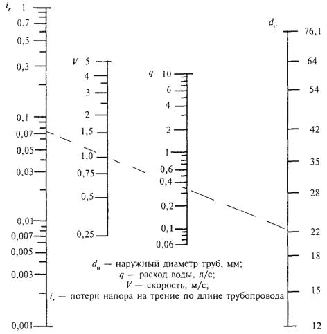 Приложение В Номограммы для приближенного гидравлического расчета медных трубопроводов. 22