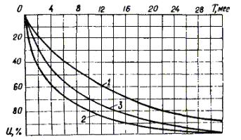 84. Разработку карьеров торфа рекомендуется производить в зимний период. При этом для движения экскаваторов по болоту устраивают промороженные полосы путем расчистки снегового покрова. Подъезды к забою устраивают из уплотненного или оледененного снега при температуре воздуха ниже -10 ºС или подсыпают грунтом при температуре воздуха выше -10 ºС. К карьерам устраивают зимние автомобильные дороги, прокладываемые по промерзшим болотам и ледяному покрову озера. Обычно предусматривают разделение потоков груженых и порожних самосвалов, т.е. прокладывают две дороги, организуя надлежащее их содержание. 85. Устройство верхней части насыпи из минеральных грунтов производят обычными способами в две стадии: в зимний период отсыпают насыпь на высоту не менее 0,6 м, а летом досыпают ее до проектной высоты. 86. Карьеры для разработки грунта в зимний период приготавливают заранее. При этом обеспечивают водоотвод, поверхность карьеров утепляют во избежание глубокого промерзания. Выбирают для зимних работ, как правило, песчаные карьеры. Зимой при разработке карьеров необходимо обеспечить круглосуточную работу одновременно не менее двух экскаваторов во избежание промерзания забоя; организовать пункты обогрева, дежурство передвижной мастерской, освещение карьера; работа автомобилей - самосвалов должна вестись по графику; разработку карьера следует вести с наветренной стороны. 87. Для снятия ударного волнового воздействия и защиты откосов от размыва после таяния на озере устраивают деревянные боны, соединяя по два бревна диаметром не менее 20 см. Боны устанавливают с двух сторон насыпи, предусматривая возможность их перемещения по вертикали при изменении уровня воды в озере. 88. К устройству покрытия приступают после достижения заданной степени консолидации торфяного основания (п. 49). Для ориентировочных расчетов времени стабилизации торфяных оснований рекомендуется пользоваться графиком (рис. 17), полученным на основе обработки данных наблюдений за ходом осадки на опытных участках дорог с промороженными основаниями. Рис. 17. Изменение степени консолидации (уплотнения) торфяных грунтов для дорог на промороженных основаниях: 1 - при строительстве на болотах I типа; 2 - то же, на болотах II типа; 3 - при строительстве на озерах, дно которых сложено торфами неустойчивой консистенции Контроль и приемка работ по возведению земляного полотна89. В процессе возведения земляного полотна на болотах и озерах осуществляют систематический контроль, освидетельствование и приемку законченных работ, руководствуясь правилами СНиП III-Д.5-73 с учетом пп. 90 - 96 в настоящих Методических рекомендаций. Текущий контроль за возведением земляного полотна, включая и контроль за уплотнением насыпей (торфяных и минеральных), выполняют лаборатории и контрольные посты строительных подразделений под руководством центральной лаборатории треста. 90. В задачи полевого контроля, имеющего особо важное значение в условиях зимних работ, входит: предварительное (до начала работ) обследование грунтов в намеченных к разработке карьерах, установление ориентировочных режимов работы уплотняющих машин; уточнение режима работы уплотняющих машин при изменении характера грунтов и погодных условий; повседневный контроль за качеством уплотнения, влажностью и составом грунта, чтобы не д
