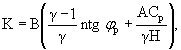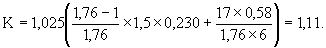 случая, когда отношение глубины потока в канаве к ширине по верху превышает где rср - расстояние от центра закругления до оси потока; В - ширина потока по верху; rmin - расстояние от центра закругления до внутренней границы потока; θ - угол поворота канавы. Рис. 1. График изменения коэффициента К: (---)