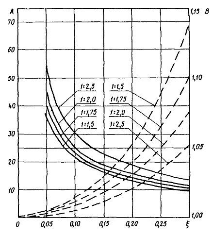 безразмерные коэффициенты, определяемые по графику рис. 1, в зависимости от