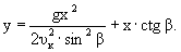 Уравнение расчетной траектории движения камня после удара о склон перед сооружением (см. рис. 2) имеет вид