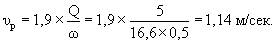 По табл. 1 приложения 8 находим υд = 3,1 м/сек. Для определения расчетной площади живого сечения потока принимаем глубину на выходе hн = hфн - 0,5 = 1,6 - 0,5 = 1,1 м. Тогда hp = 0,8 ´ hн = 0,8 ´ 1,1 = 0,88 м, ωр = в ´ hp = 6 ´ 0,88 = 5,28 м2 Расход
