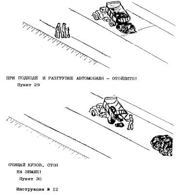 30. Остатки материалов в кузове автомобиля-самосвала очищать разрешается одному, специально проинструктированному рабочему. Находясь на земле, он должен очистить кузов от налипшей смеси совковой лопатой (скребком), укрепленной на длинной (не менее 2.0 м) рукоятке. При этом не разрешается влезать в кузов, вставать на скаты, стучать снизу или раскачивать кузов самосвала. 31. При укатке покрытий моторными катками смазка вальцов вручную запрещена. 32. Разгрузку смеси следует производить только после предварительного предупреждения рабочих, занятых на ее укладке.