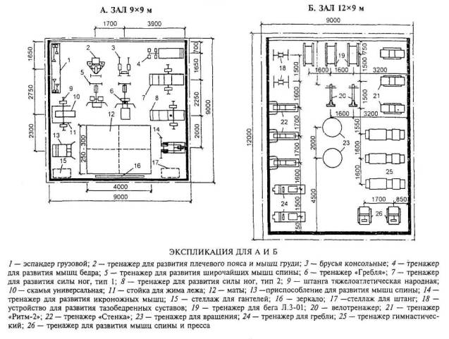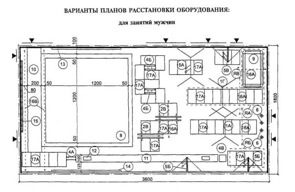 ПРИМЕРЫ РАССТАНОВКИ ТРЕНАЖЕРОВ В ЗАЛАХ |