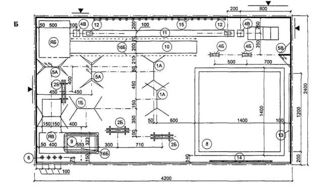 На схемах планировки помещений указаны унифицированные модульные параметры с учетом опыта проектирования, приводятся точные размеры всех элементов планировки и привязки конструктивных элементов к модульным разбивочным осям. Размеры на чертежах указаны в см, на чертежах оборудования - в мм или специально оговариваются.