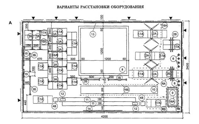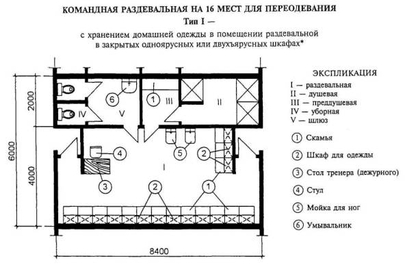 РАССТАНОВКА МЕБЕЛИ И ОБОРУДОВАНИЯ РАЗДЕВАЛЬНЫХ |