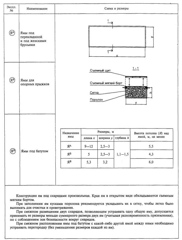 ЯМЫ ПОД СНАРЯДАМИ В ЗАЛАХ ДЛЯ ГИМНАСТИКИ |